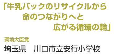 地域と独自のリサイクルに取り組む同校。中でも活発なのが、給食の牛乳パックを環境委員会が回収して、古紙回収業者に引き渡し、トイレットペーパーに交換する活動だ。川口市の団体が取り組む資源リサイクルと障がい者の仕事づくりをつなぐ「グリーンサポート運動」に参加後は、近隣の社会福祉法人「ごきげんらいぶ」に入所するメンバーが、児童から直接牛乳パックや古紙を受け取り、トイレットペーパーを手渡す活動に発展。量が増えるとかさばる牛乳パックを、障がい者の人たちが持ち運びしやすいよう、児童が牛乳パック専用の回収箱を手づくりするなど工夫を凝らす。リサイクルが福祉教育へと広がる中、もっと楽しく取り組めるよう校内環境通貨のしくみを設けた。牛乳パックを回収箱に入れると通貨がもらえ、安行小まつりの「エコマーケット」などで使用できる。こうしたリサイクル活動は、自然の中の大きな循環の一つに位置付けられ、古紙以外にも、給食残さで土づくりをしたり、絶滅危惧種のアカガエルの保護やヤギを飼育したりしながら、命のつながりを実体験している。